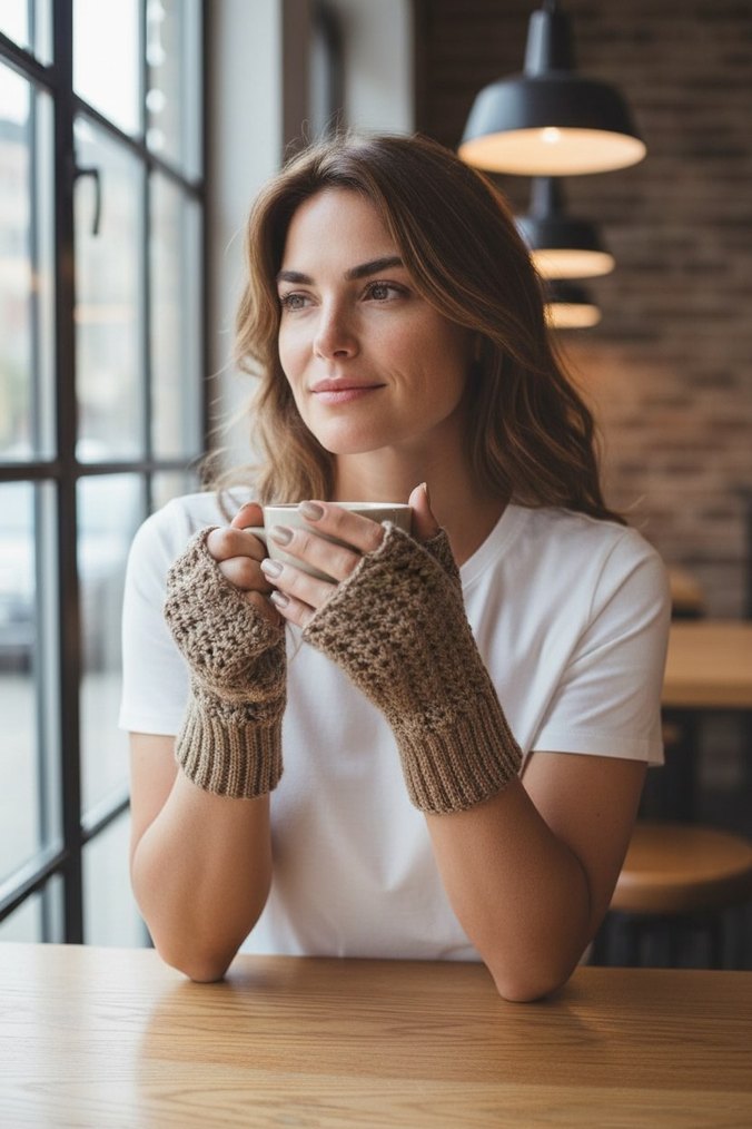 Yumuşak örgü kumaştan yapılmış, bohem tarzda bej örgü kadın eldivenleri, rahat ve trend görünüme uygundur.