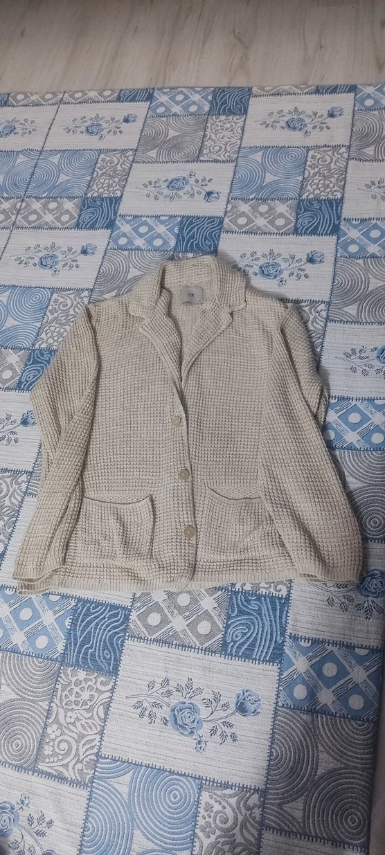 Bej renkte, örgü kumaştan yapılmış, yakalı ve uzun kollu, bol kesim midi uzunluğunda erkek hırka. Ön ceplidir, günlük kullanıma uygundur. pazarlık olur