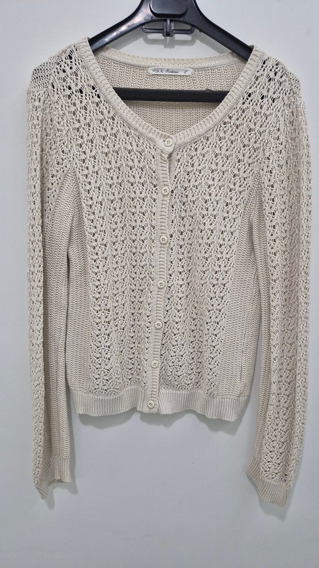 Bej Örgü Kadın Hırka Uzun Kollu