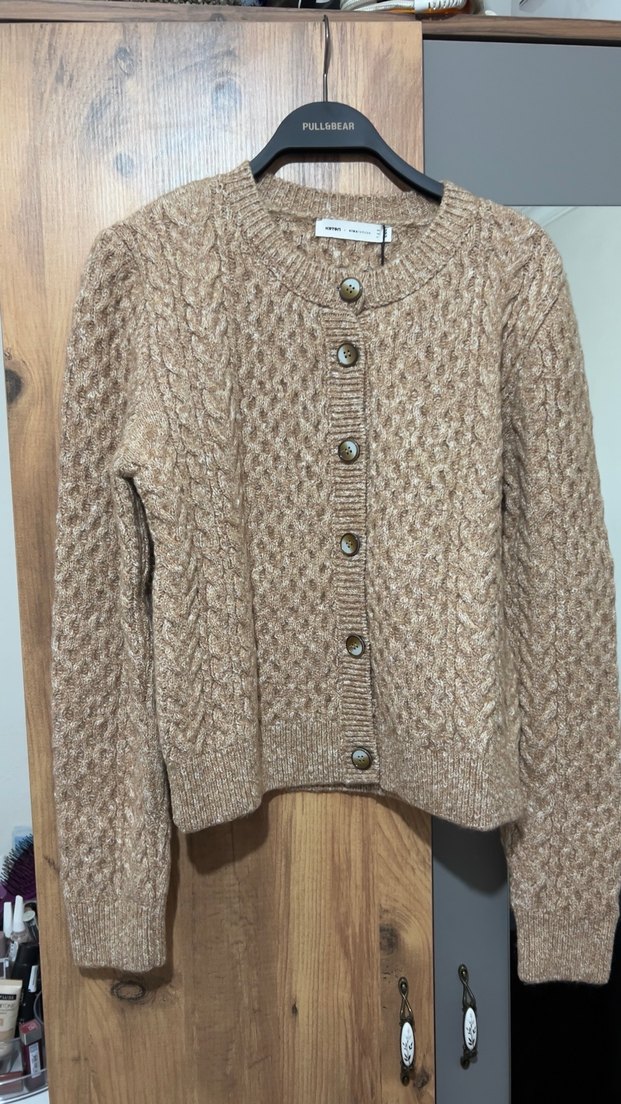 Bej Örgü Kadın Hırka Uzun Kollu - Görsel 1