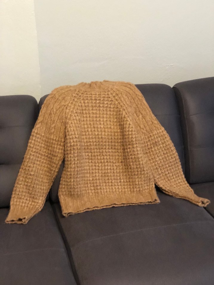 Bej renkli, yuvarlak yaka ve uzun kollu örgü kadın kazak. Rahat kesimi ve normal boyu ile günlük kullanıma uygundur. Trendyolmilla s beden