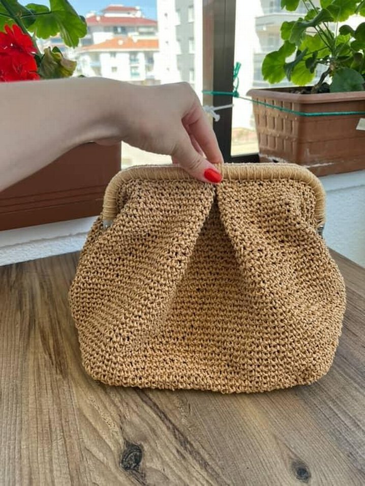Yumuşak dokulu, bej renkli örgü kadın portföy çanta, rahat ve bohem tarzda, günlük kullanıma uygun. ZARA DEĞIL EL EMEĞI