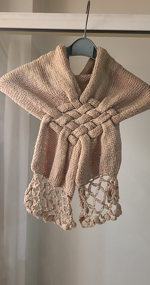 Bej renkte, örgü dokulu kadın şalı. Bohem tarzı ve retro esintilerle, örgülü detaylarıyla sıcak ve rahat bir görünüm sunar. el örgüsüdür iade ve değişim yoktur.
