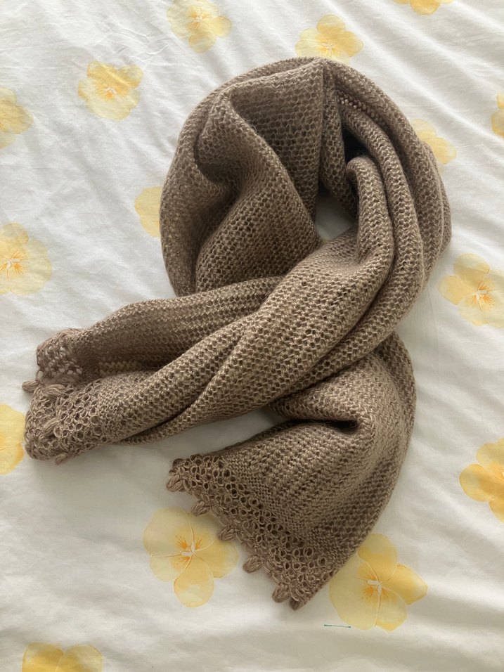 Bej renkli, örgü kumaştan yapılmış kadın şalı, hiç kullanmadım 150 boyu
