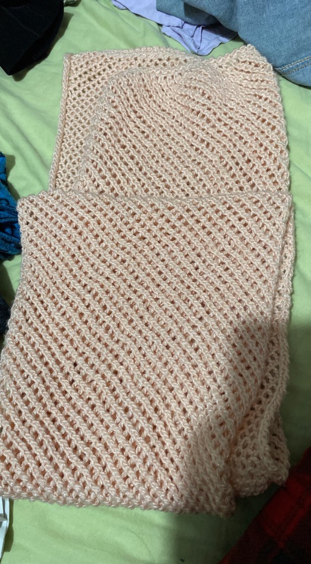Bej renkte, örgü dokulu yumuşak kumaştan yapılmış kadın şalı. Rahat, bohem tarzıyla sade ve temel kombinlere uygundur.