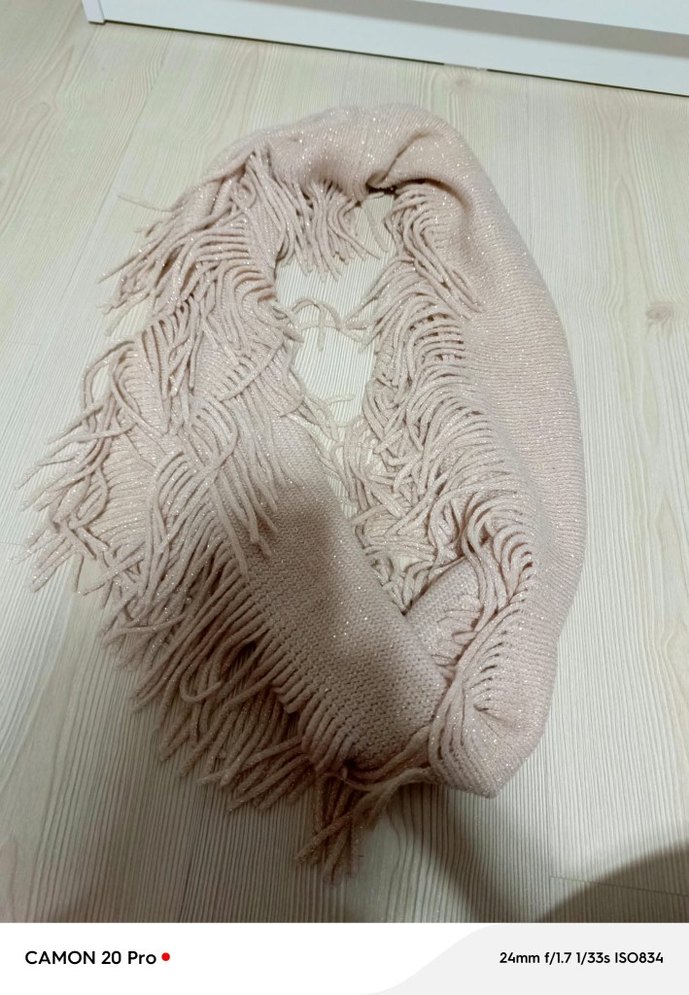 Bej renkte, örgü dokulu, püsküllü kadın şalı. Yumuşak sentetik kumaştan, rahat ve bohem tarzda bir tasarım.