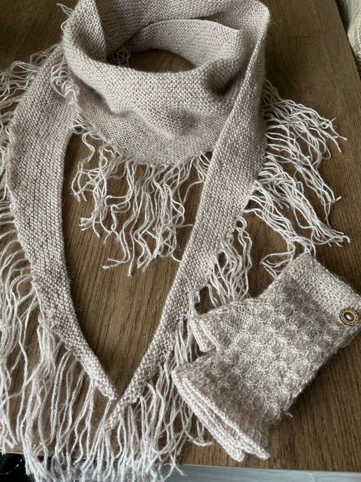Bej Örgü Kadın Şal Püsküllü &Eldiven