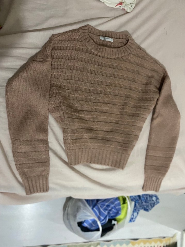 Bej renkli, örgü kumaştan yapılmış kadın triko kazak. Yuvarlak yaka ve uzun kollu, bol kesimiyle rahat bir günlük sokak stili sunar. Normal boyda ve konforlu dokuda.