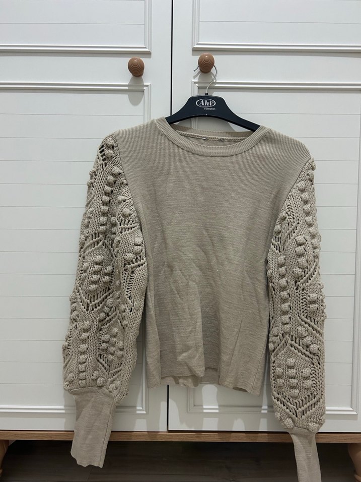 Bej renk, uzun kollu, detaylı örgü kol ve yuvarlak yaka özellikli, bol kesim bohem tarzda kazak. Bir problemi yoktur