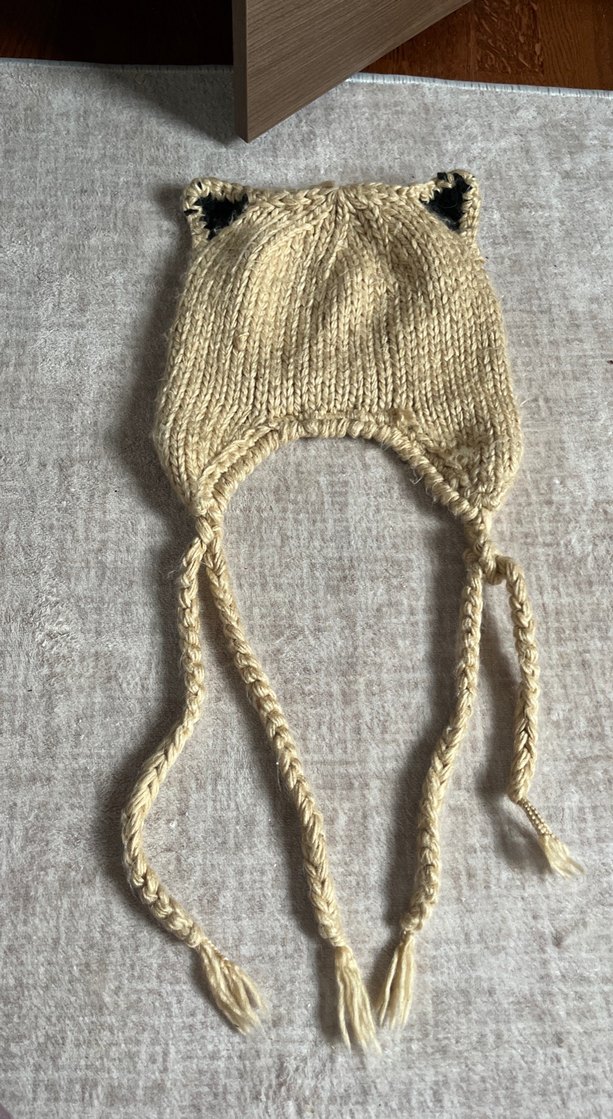 Bohem tarzı, örgü bej bere, kulaklıklı ve örgülü bağcık detaylı. Yumuşak ve sıcak tutan malzeme ile soğuk günler için ideal.