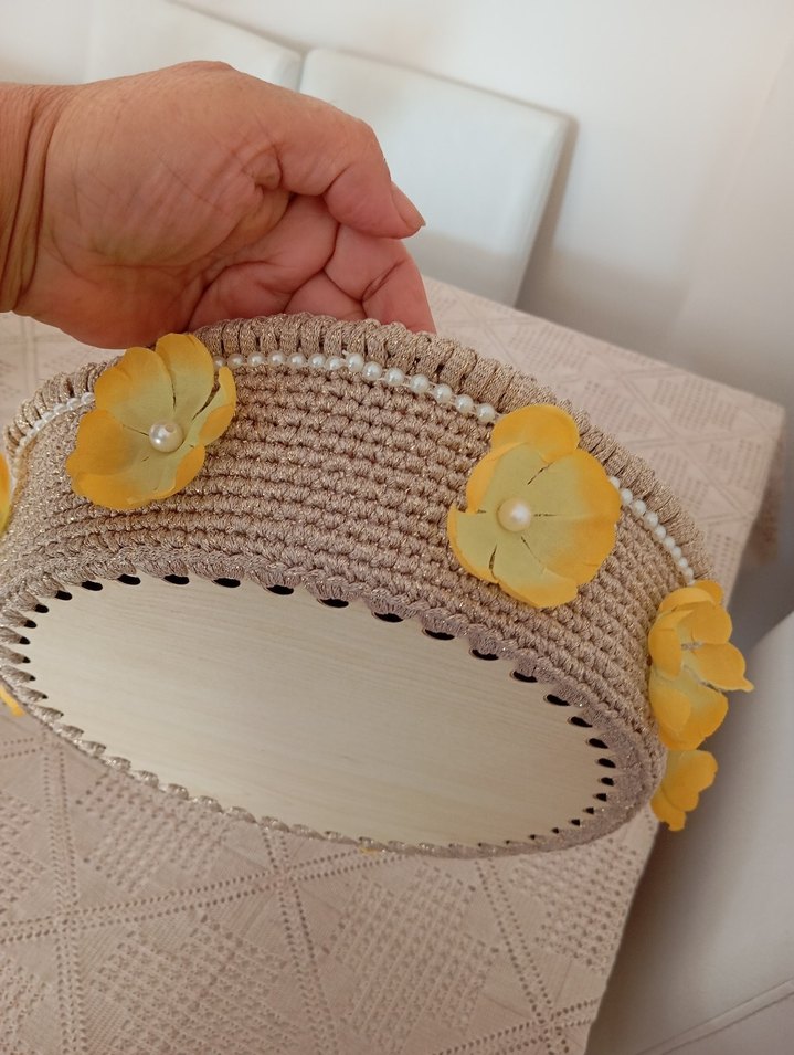 Bej Örgü makyaj kutusu ekmeklik çok amacli