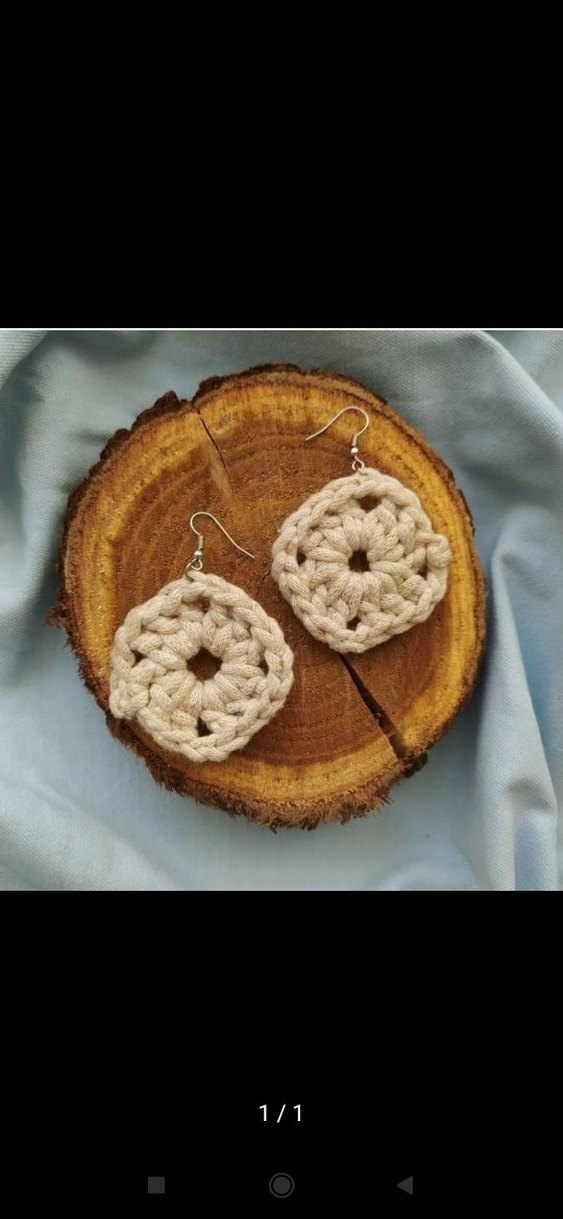 Yeni,hiç kullanılmamış.Herhangi bir sorunu yok.Fazla olduğu için satıyorum. Bej renkli, işlemeli desene sahip örgü mini küpeler. Bohem ve rahat tarzda, günlük kullanıma uygun.
