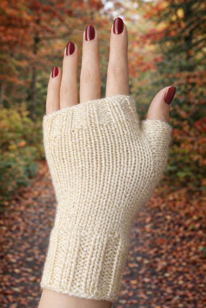 Yumuşak örgü simli ipten ,bej renkli parmaksız kadın eldiveni. Sade ve bohem tarzda, rahat ve temel bir görünüm sunar.