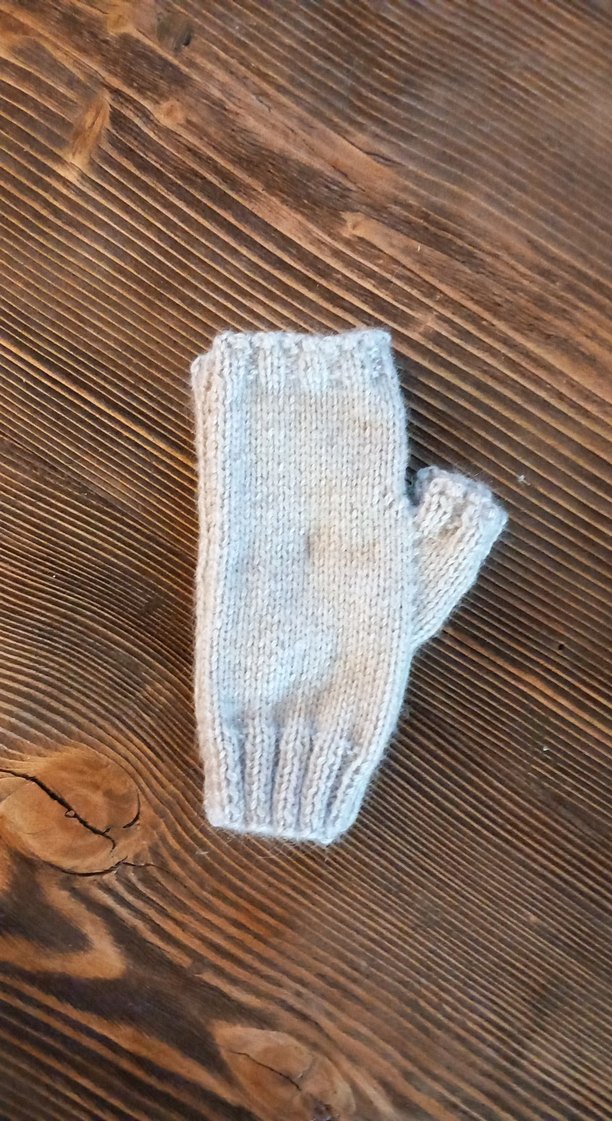 Yumuşak örgü kumaştan yapılmış bej parmaksız kadın eldiveni, sade ve bohem tarzıyla rahat bir kullanım sunar.
