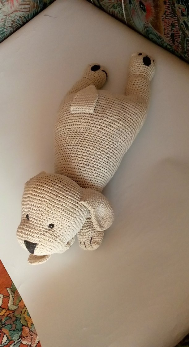 Bej Örgü Uzanan Köpek El Örgüsü Organik Oyuncak