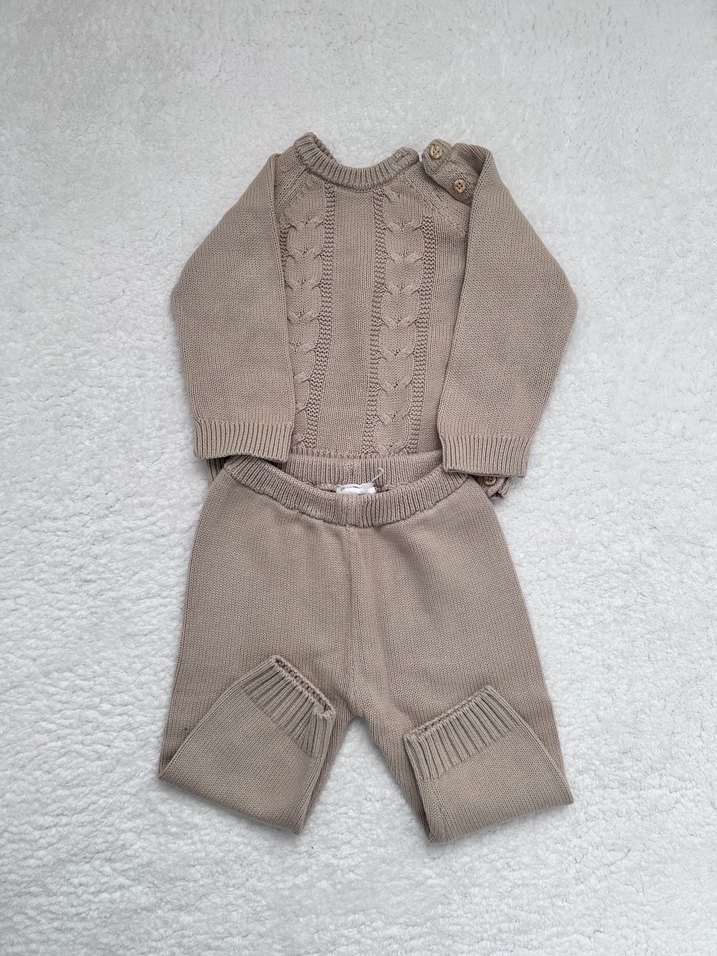 Birkaç kere giyildi Sütlü kahve rengindedir 3-6 ay bebek İki adet mevcuttur isteyen yazabilir Bej renkli, örgü kumaştan yapılmış, uzun kollu ve sade tasarımlı bebek kıyafet takımı.