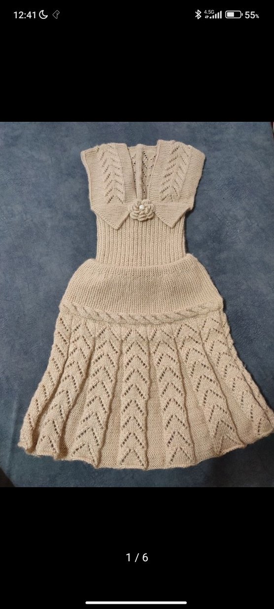 Bej Örgü V Yakalı Uzun Kadın Elbise
