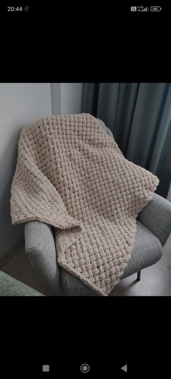 Yumuşak dokulu, desensiz bej renkli örgü çocuk battaniyesi, sıcak tutmak için uygundur.