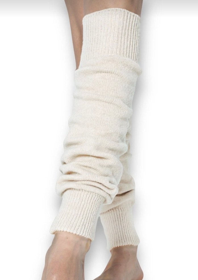 Bej krem renkte, örgü yünden yapılmış, dizlik tozluk
