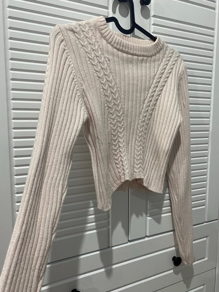 Bej renkli, yüksek yakalı ve uzun kollu örme triko kazak, günlük rahat kullanım için uygun, vücuda oturan rahat bir tarza sahiptir.