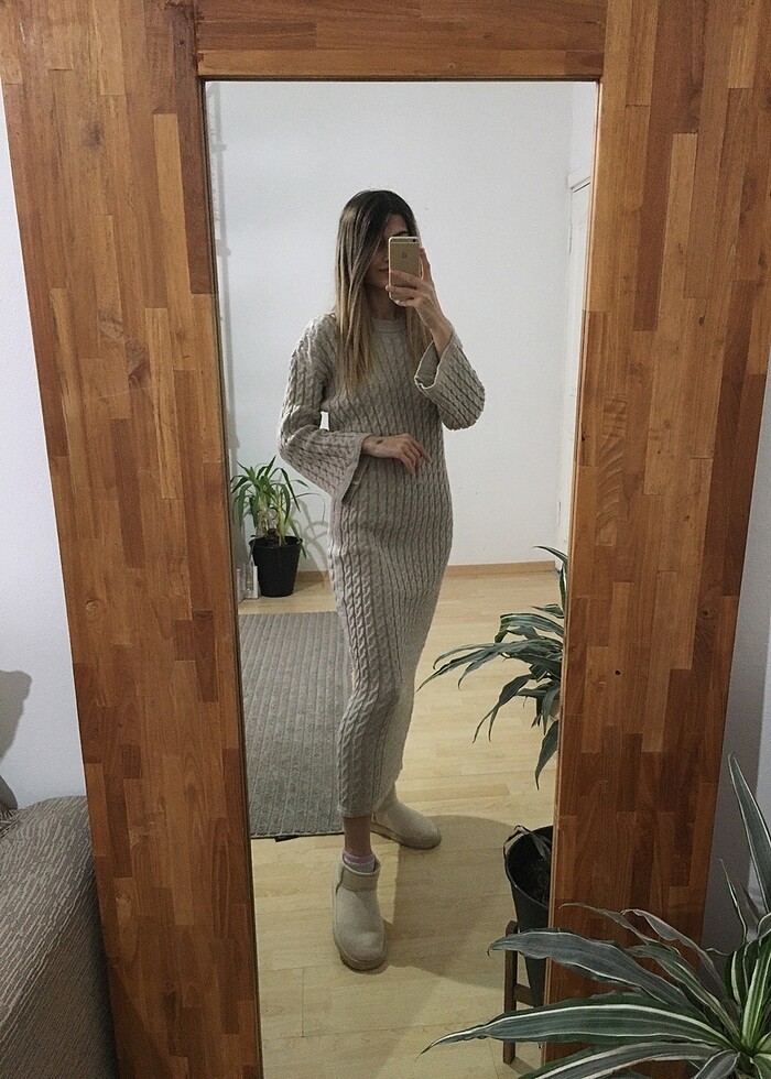 Bej Örme Triko Elbise