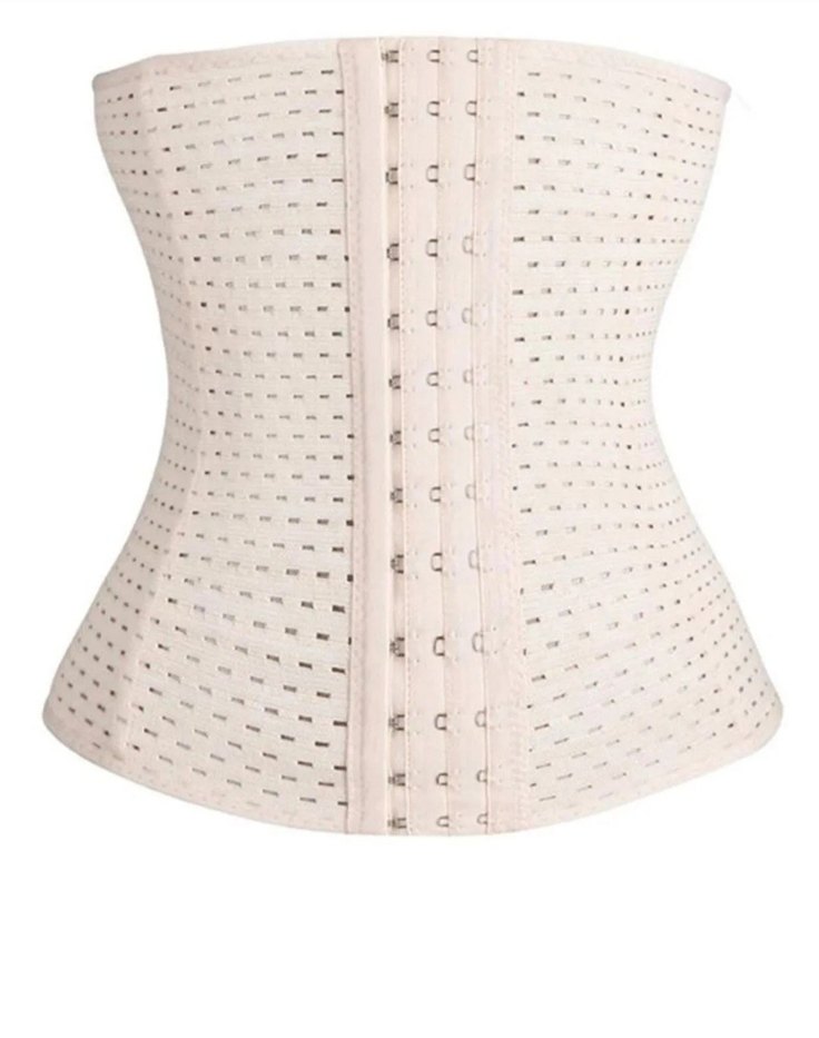 Açılabilir kancalarla ayarlanabilir destek sağlayan, hava alan delikli, bej renkli orta boy loğusa korsesi.