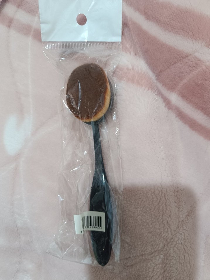 Bej renkte oval makyaj fırçası, koyu renk sapı ve yumuşak kılları ile pürüzsüz makyaj uygulaması sağlar. ️