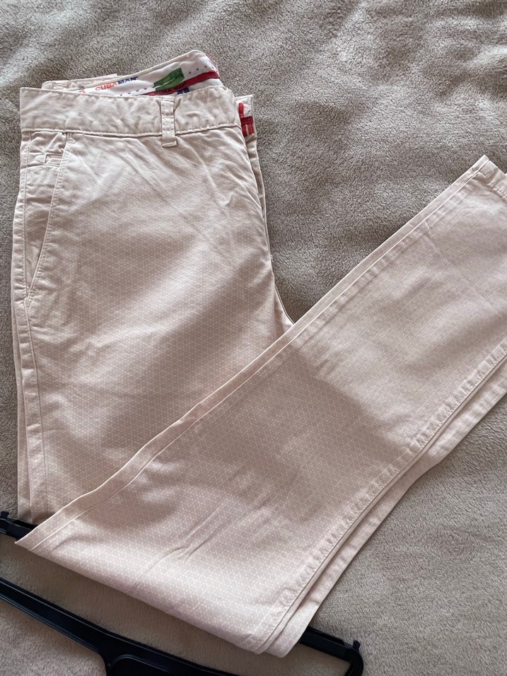 Pamuk kumaştan, bej renkte, regular fit ve midi boy erkek pantolon. Sokak stili için uygun, günlük kullanıma ideal, zahmetsiz şıklık sunar.