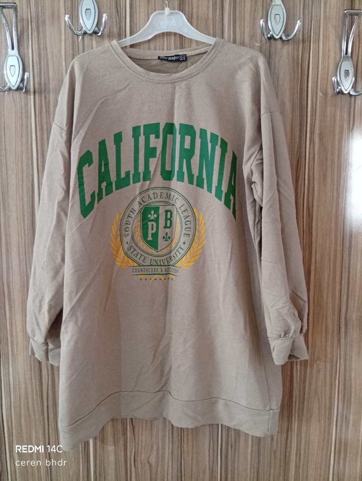 Bej Pamuklu California Baskılı Kadın Sweatshirt