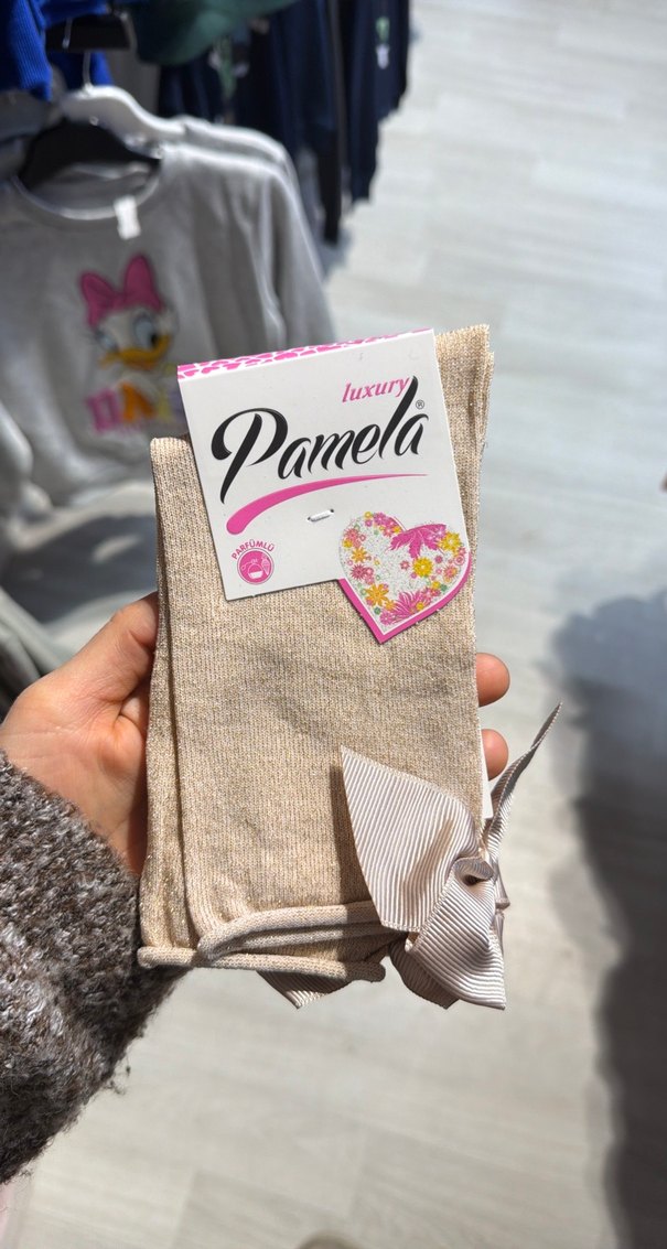 Pamela markalı, yumuşak dokulu bej renkli bayan çorabı, dekoratif kurdele detayı ile pastel tonlarda şık bir seçim. Kutu içeriği 12 adet