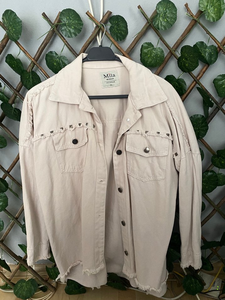 Bej renkte, pamuklu, düğmeli, uzun kollu, bol kesim kadın gömleği sıfır ürün sayılır