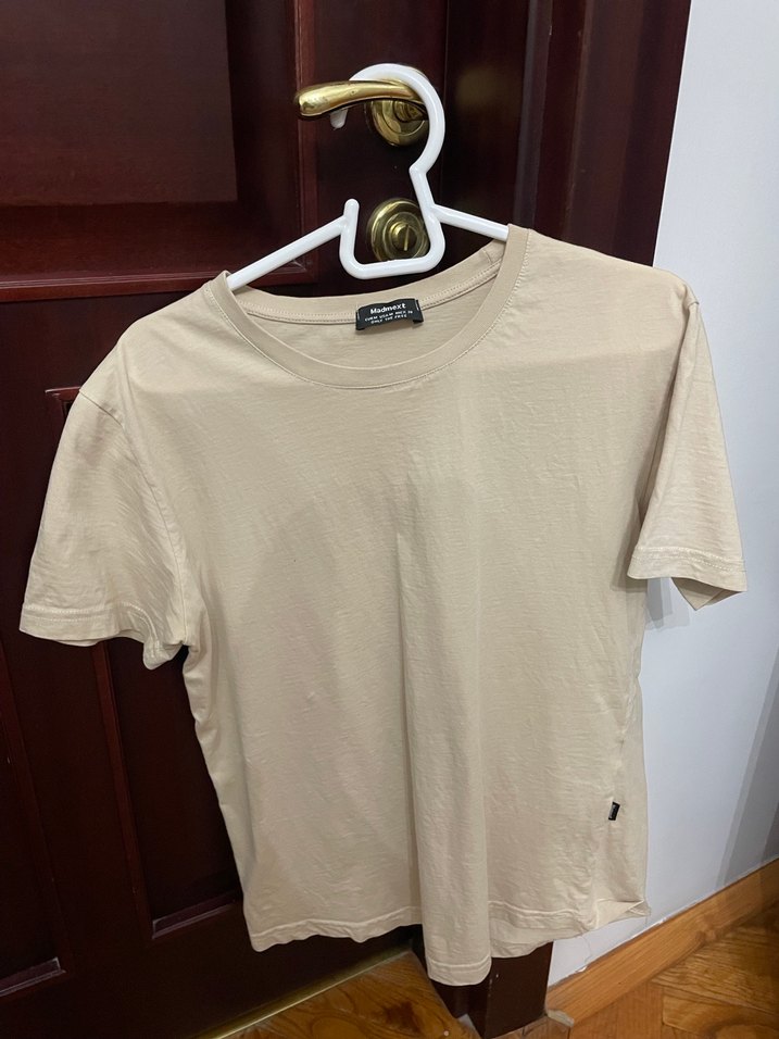 Bej renkte, kısa kollu ve yuvarlak yakalı kadın tişörtü. Pamuklu kumaştan üretilmiş, rahat ve salaş kesimle günlük kullanıma uygundur.