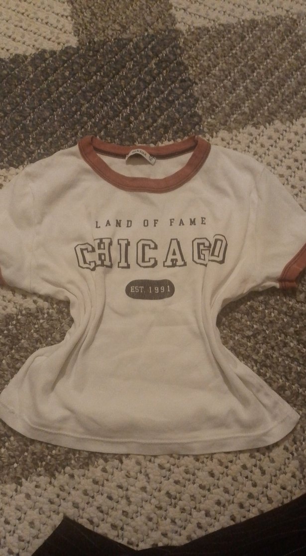 Bej renkli kısa kollu ve yuvarlak yakalıdır. Pamuklu yumuşak kumaştan olup, 'CHICAGO LAND OF FAME EST. 1991' baskılıdır ve pastel detaylar içerir. XS veya S beden için uygundur