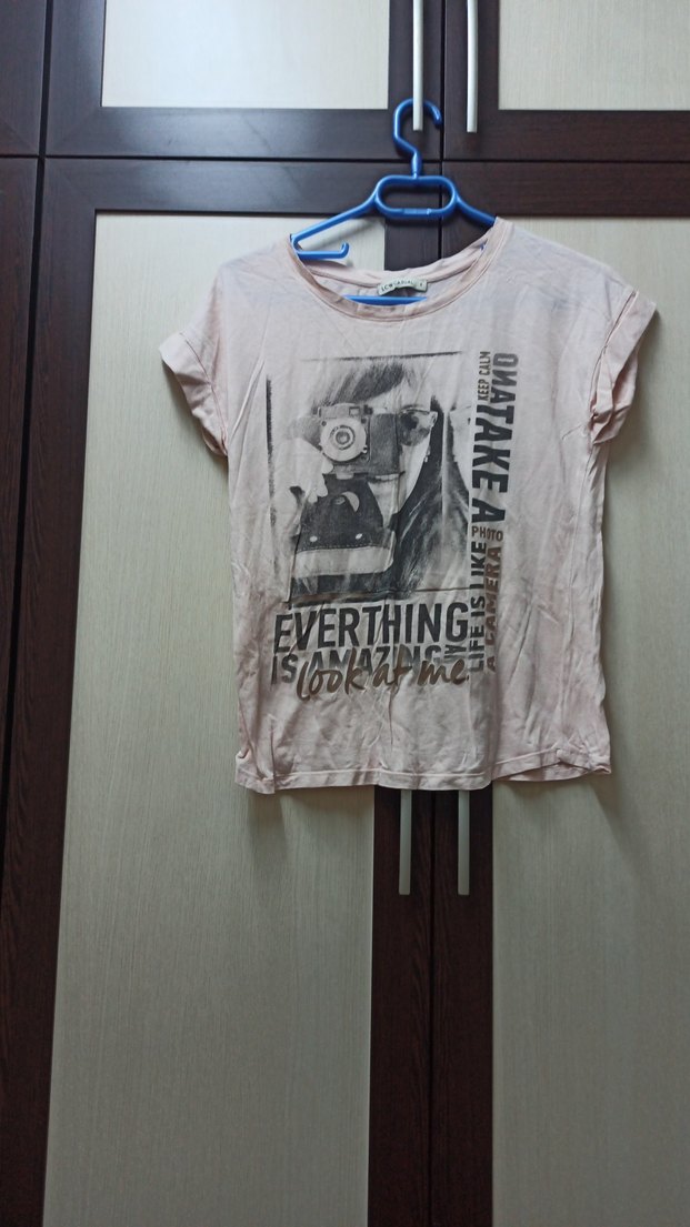Bej Pamuklu Kız Tişörtü, Baskılı, Kısa Kollu