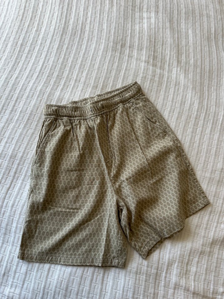 Bej pamuklu, erkek çocuk şort lastikli bel bantlı, günlük rahat sokak stili için uygun.