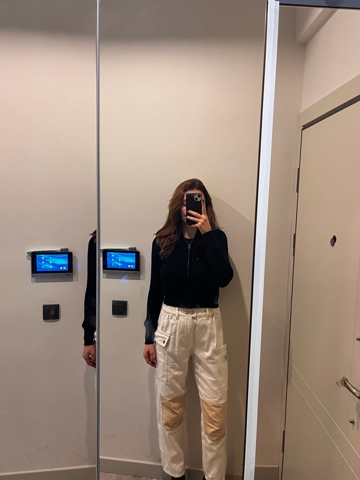Bej pamuklu, salaş kesim midi boy kadın pantolon, rahat sokak stili ve zahmetsiz şıklık sunar. Günlük kullanıma uygundur.