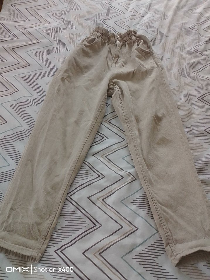Bej renkli, pamuklu ve salaş kesim kadın pantolonu. Rahat ve şık sokak stili için ideal bir tercih.
