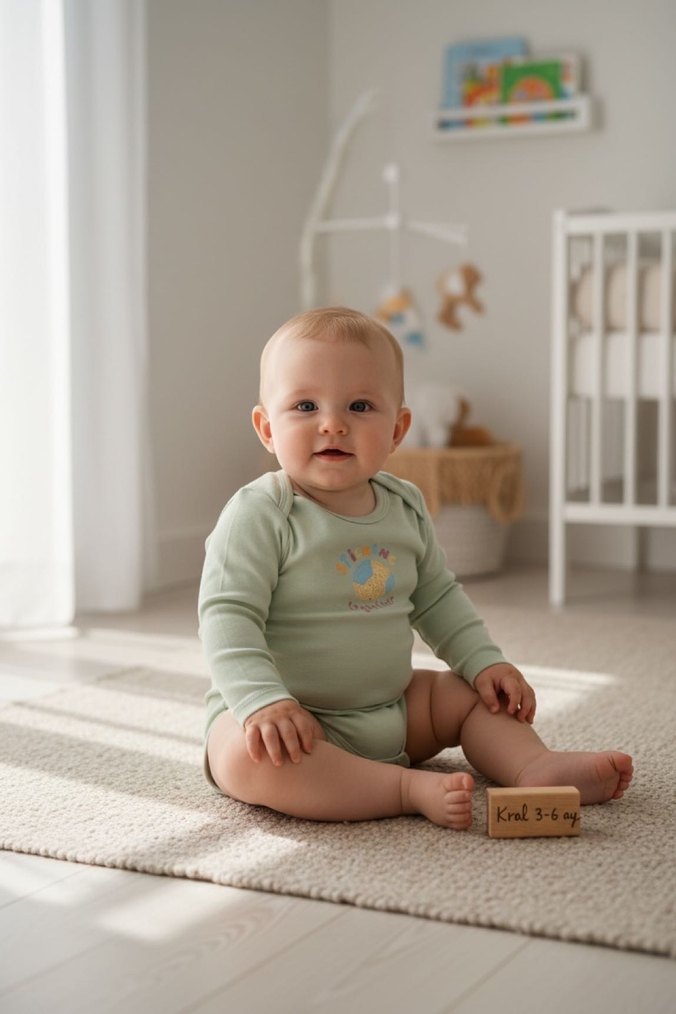 Bej renkli, uzun kollu, yuvarlak yakalı ve kabartmalı tasarıma sahip pamuklu bebek body. Desensiz ve günlük kullanıma uygun.