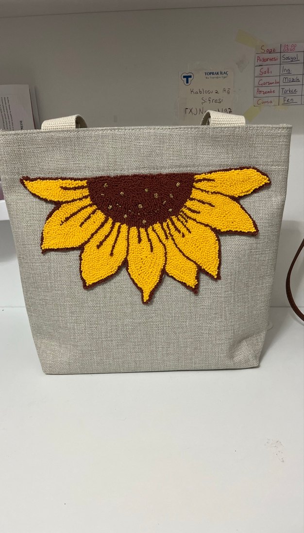 Elemeği Panç işlemeli keten dik duran çanta içi astarlı ve cepli sıfır ürün