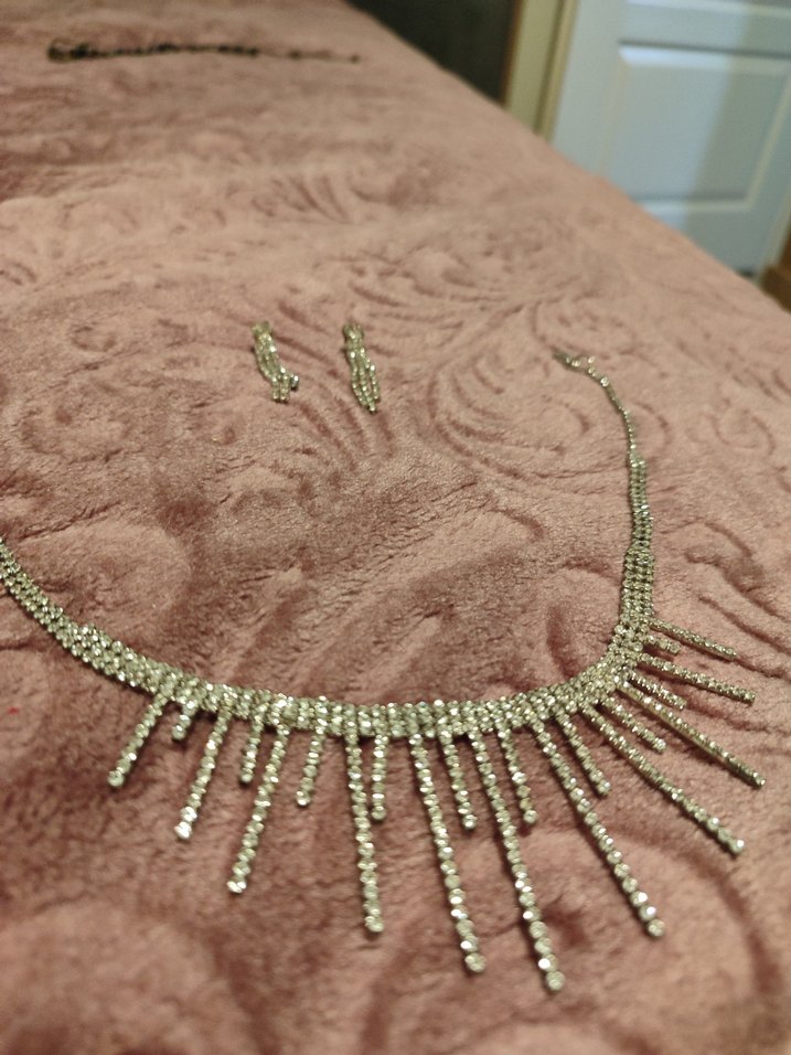 Bej renkli, işlemeli ve pul detaylı kadın takı seti. Düğün ve özel günler için parlak ve çağdaş bir şıklık sunar. ✨