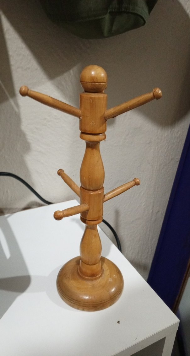 Bej renkli, parlak yüzeye sahip ahşap figür. Çoklu kollu ve yuvarlak tabanlı, sade tasarımlı. Ben bunu takı takmak için bir süre kullanmıştım hatta eskiden bir ara mutfakta kupa asmak için bile kullandım ama ev aksesuarlarımı yenilemek istiyorum