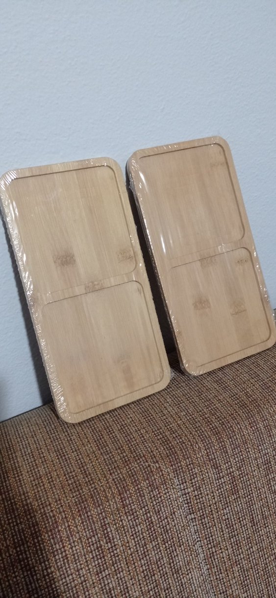 İki bölmeli, ahşap görünümlü bej parlak saklama kapları. Atıştırmalıkları veya yemekleri ayrı tutmak için uygundur.