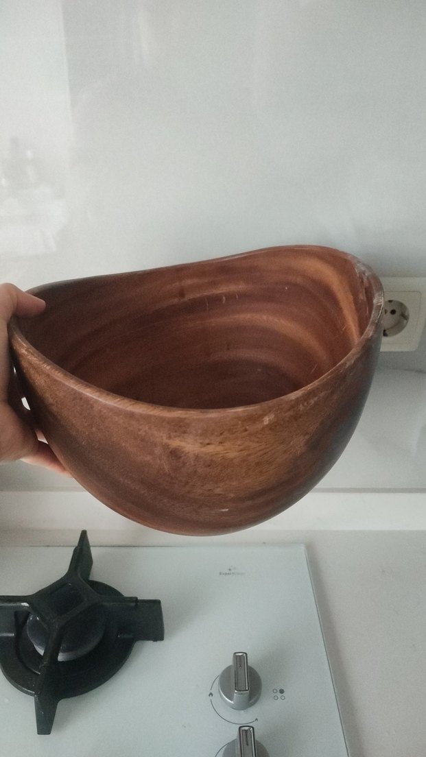 Bej parlak ahşaptan yapılmış, doğal ve organik şekilli vazo. Rustik bir dokunuş için uygundur. Ikea