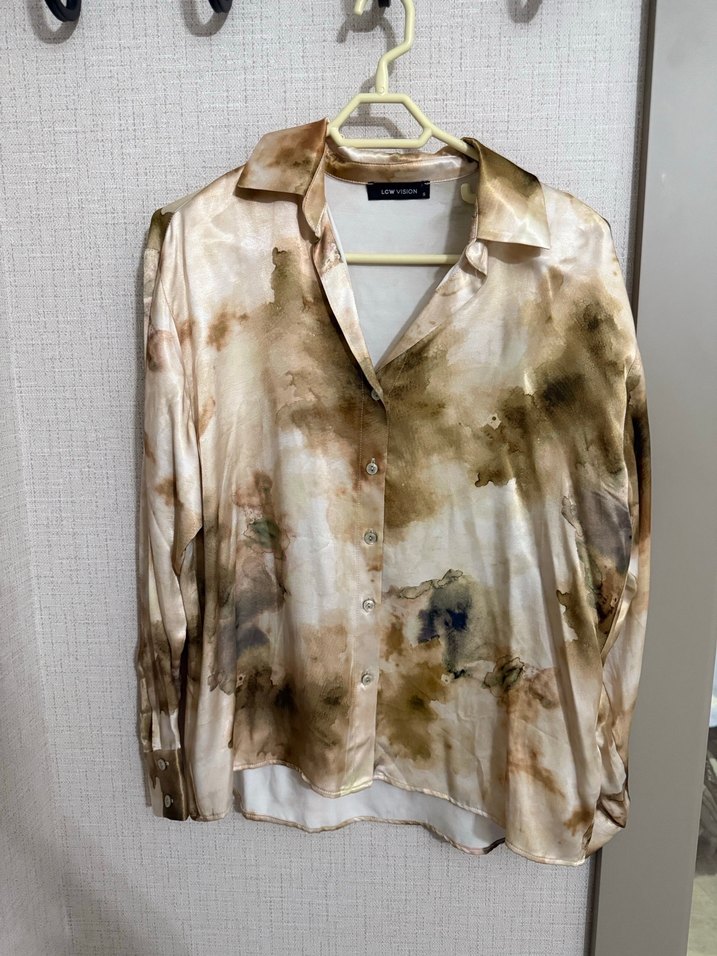 Bej renkli, parlak batik desenli gömlek, uzun kollu ve yakalıdır. İpek gibi yumuşak kumaştan olup, düğmeli ve midi boydadır. Bohem tarzını yansıtır.