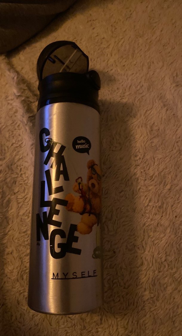 Parlak bej renkli çocuk termos matara, kapaklı tasarımı ve 'MYSELE' yazılı eğlenceli grafiklerle donatılmıştır. İçecekleri sıcak veya soğuk tutar.