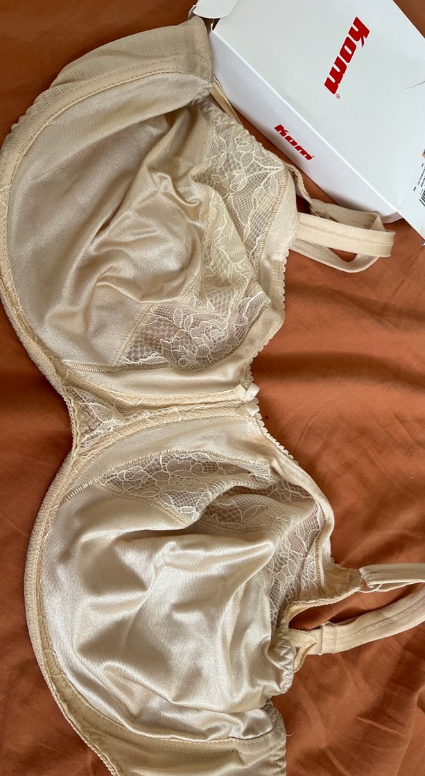 Bej renkli, parlak kumaş ve ince dantel detaylara sahip vintage bohem tarzda, normal uzunlukta rahat bir sütyen. ✨az kullanıldı