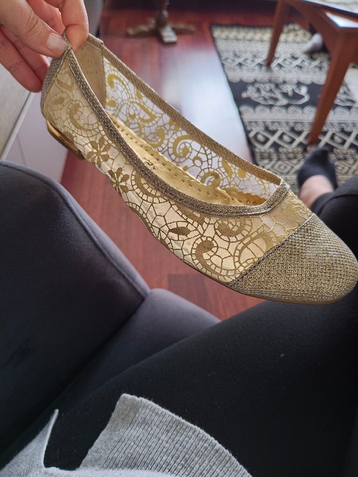 Bej renkte, dantel detaylı ve dolgu topuklu kadın babet. Parlak yılan desenli kauçuk malzemeden, klasik ve günlük kullanım için uygun.