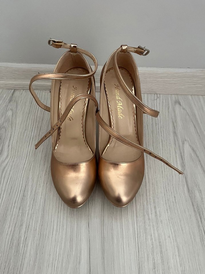 Bej parlak deri stiletto topuklu, tokalı kayış detaylı, düğünlere uygun modern klasik tarzda abiye ayakkabı. Desensiz ve şık tasarım sunar.