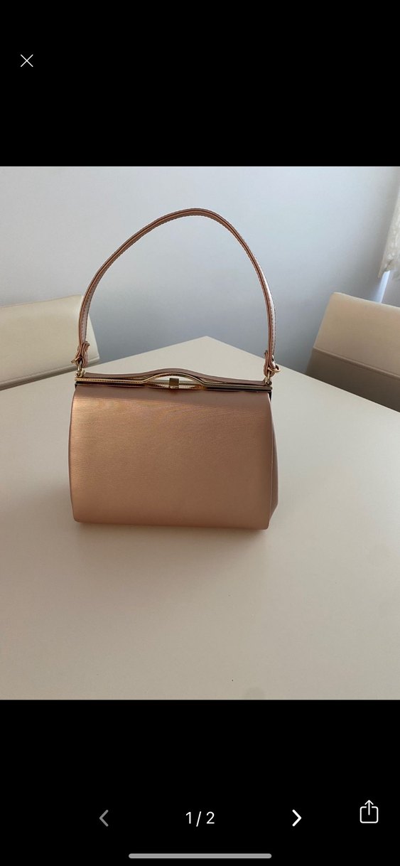 Bej renkte, parlak deri malzemeden yapılmış, vintage tarzında ve tokalı kapanışa sahip klasik günlük kullanıma uygun kadın çantası. 1-2 kez kullanıldı tertemiz
