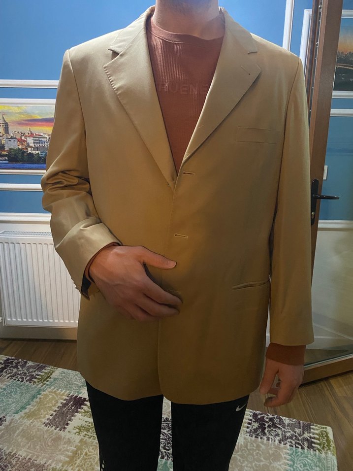 Bej renkli, düğmeli ve notlu yaka detaylı erkek ceket. Regular fit ve uzun kolludur, ofis ve günlük sokak stili için uygundur. ✨